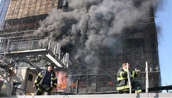 ![]() AP Photo/Eric M. Hazard Firefighters outside the Deutsche Bank fire, which killed two FDNY members in August 2007. |