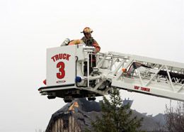 ![]() Photo Ron Johnson Firefighters observe damage to the condominum building after its roof collapses. |