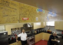 ![]() AP Photo/Alex Brandon Some of the people that helped rebuild the firehouse for Engine 33 signed a beam. |