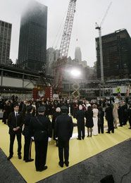 The site where the World Trade Center was destroyed is normally filled with hundreds of workers building a 102-story skyscraper, a memorial and transit hub. It bears little resemblance to the debris-filled pit where crews toiled to remove twisted steel and victims’ remains.