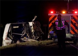 ![]() AP Photo/Tony Gutierrez An emergency worker walks from the scene of the bus crash. |