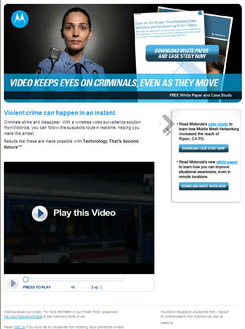Check out this sample blast from Motorola that does an excellent job adhering to the above rules, and in particular the “Call to Action” part, which is reaffirmed several times.