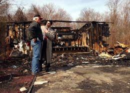 ![]() AP Photo/Mary Murphy An insurer and a fire investigation expert hired for civil suits stemming from The Station nightclub fire, talk on the floor in front of what was the stage of the nightclub in West Warwick, R.I. in 2003. |