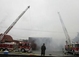 ![]() AP Photo/Jason E. Miczek Firefighters tackle the March 7 fire. |