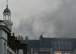 Seventy-five firefighters fought the blaze with powerful hoses. Smoke from the building could be seen across the London skyline.