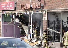The blast struck around lunchtime in the business district about 40 miles north of Chicago, shattering windows and collapsing the roof of the plaza, which housed a cell phone shop, a tuxedo store and a hair salon, among other businesses.