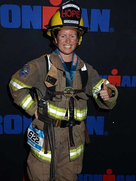 Donning her turnout gear and air pack, Firefighter Silva powered through not only her training, but the full Ironman competition crossing the finish line in a way no one else did.