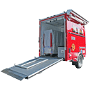 The CrewBoss Rehab Trailer interior space is outfitted with built-in features such as: Air conditioning and heat, multi-functional exhaust fan, ceiling utility hangers (for IV bags, air masks, etc), multiple wall hooks, privacy curtains, completely washable interior surfaces. The trailer exterior has such operational features as: a hand washing sink, scene lighting, low level perimeter lighting, turnout gear hanging system, auxiliary outlets, generator storage, and exterior access door to the inside storage bench. For more information, visit crewboss.westernshelter.com.