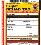 The New DMS-05696 Firefighter REHAB Tag was developed to comply with REHAB procedures established by the USFA and the NFPA 1584 guidelines. With the aid of this tag, Incident Commanders can effectively assess, rehabilitate and document the incident driven REHAB needs of workers. A NIMS compliant ICS group is formed when used in unison with the DMS-05697 REHAB Accountability System or the full solution DMS-05701 Firefighter REHAB Vest, Flag, & Accountability Kit. For electronic tracking, this tag also features an I.D. number with corresponding larger, easy read bar-code. Call 909-594-9596 or visit www.triagetags.com.