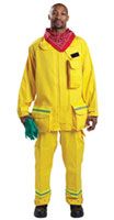 Available in NFPA 1977 compliant Nomex® IIIA (yellow), PBI® Triguard (yellow, natural and cobalt blue) or Indura® FR cotton (yellow). Features nickel-plated brass snap front closures with fabric shield to prevent heat transfer and an extra long front and back hem that can be tucked in or left out of pants. Adjustable hook and loop wristlet closures keep embers from entering sleeve. Plus, there are two spacious chest pockets with full coverage pocket flaps and pen slot (left side). You can reach Lion Starfield at 1-937-898-1949 or visit their website at www.starfieldlion.com.