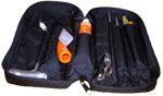 The Sawyer Zippered Tool Pouch measures 10 1/2" x 5 1/2" and features: complete zipper closure, slots for flat file, round file, grease, guide and scrench, and a pouch for extra spark plug, two side pouches for small parts, file handle, extra chain, rags. You can reach The Pack Shack at 1-800-653-2671 or visit their website at thepackshack.com.