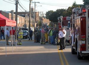 ![]() AP Photo/Jack Sauer Emergency workers set up outside the Yardney Technical Products factory, Tuesday, in Stonington, Conn. A battery explosion and fire forced the evacuation of about three square miles. There were no reported injuries. |