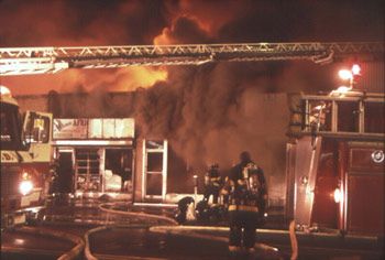 Heavy fire was found in the rear of the structure with extension to the cockloft and breaking through the roof. A third alarm was soon transmitted, bringing mutual aid units to the scene. Ceiling collapses in two of the stores prompted firefighters to be withdrawn from the structure; a defensive attack was then put into operation. After a 2-hour battle, the main body of the fire had been knocked down, and mutual aid units were released. Companies continued to hit hot spots and overhaul for hours. No injuries were reported, but the Essex County Prosecutor’s Office was called in to investigate.
