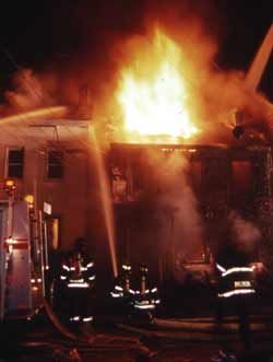 On July 16, at 2048 HRS, the Paterson (N.J.) Fire Department was dispatched to a reported structure fire on Montgomery Street in Paterson. First-arriving units saw heavy fire on the first and second floors of the 2 ½-story house. The flames, which were extending to the roof, had already jumped the alleyways on each side of the building and were involving both the No. 2 and No. 4 exposures. A second alarm was requested at 2051 HRS, followed by a third alarm at 2104 HRS. At the height of the incident, about 40 firefighters (on 10 rigs) used an aggressive attack to keep flames from traveling down the block.