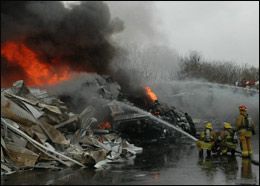 Many old tires, oil-covered car engines and residual gasoline helped feed the flames. A large plume of thick, black smoke filled the skies and could be seen from miles away.
