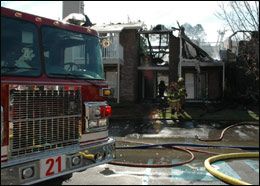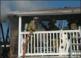 ![]() PHOTO CAPT. DANNY HAGUE The smoke and flames were intense when the first firefighters arrived at the scene. |