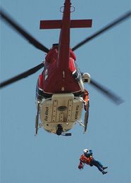 ![]() Photo Mike Meadows One of the injured hikers is airlifted from the scene. |