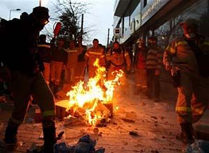 More than 1,000 firefighters also protested peacefully earlier Thursday outside the Labor Ministry but were dispersed by tear gas.