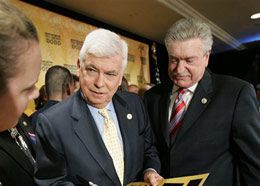 ![]() AP Photo/Susan Walsh Sen. Chris Dodd signs an autograph as IAFF General President Harold Schaitberger looks on at a press conference in Washington, Wednesday, held to announce the union’s endorsement. |