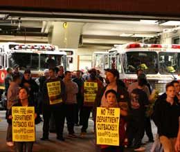 ![]() Photo Ron Trout/Phillyfirenews.com Protesters gather outside a Philadelphia firehouse November 6 after the city’s mayor announced cutbacks. |