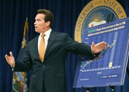 ![]() AP Photo/Steve Yeater Governor Schwarzenegger explains a budget proposal at a news conference in Sacramento, Thursday. |