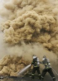 ![]() AP Photo/Shin Young-keun Firefighters work to extinguish the fire, Monday. |
