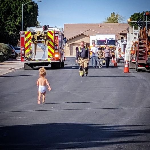 GLENDALE, Ariz. — Capt. Dave Colson with the Glendale Fire Department was working at a call down the street from his home, and his young daughter just had to say hi.