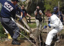 When Reba crossed over a septic tank, her weight either broke or displaced the cover and Shooter fell into about 3 feet of foul water.