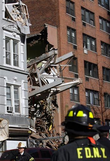 ![]() AP Photo/Jason DeCrow A section of collapsed crane protrudes from a crushed building on 50th Street near Second Avenue Saturday in New York. |