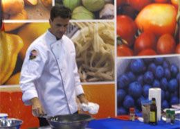 ![]() Photo Jamie Thompson Joseph Bonanno Jr., an FDNY veteran and nutritionist, mans the NVFC booth at Fire-Rescue International to offer healthy cooking demonstrations. |