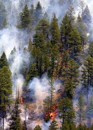 ![]() AP Photo/Nathan Bilow A fire burns out of control in the San Juan Forest near San Durango, Colo. in 2002, a season that saw several dangerous fires in the area. |