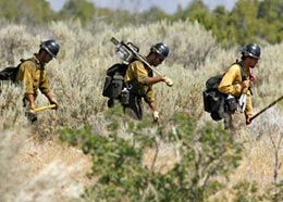 ![]() AP/The Salt Lake Tribune, Danny Chan La Firefighters hike in to help fight the wildfire north of Roosevelt, Utah, Sunday. |
