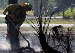 ![]() AP Photo/Joe Kaleita A firefighter works on hotspots in a wooded area of Grant, Fla., Tuesday. |
