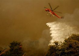 ![]() AP Photo/Petros Giannakouris A helicopter drops water on the Hill of Kronos next to the site of ancient Olympia, Sunday. |