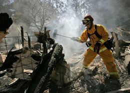 ![]() AP Photo/ Marcio Jose Sanchez Firefighter Kevin Rawitzer works on a burned down house in Watsonville, Calif., Saturday. |