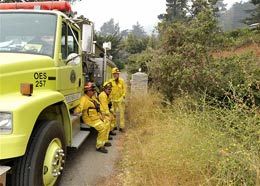 ![]() AP Photo/Phil Klein Atwater firefighters rest in front of a house on Highway 1 with a fire burning next to Burns Creek bridge south of Big Sur, Calif., Tuesday. |