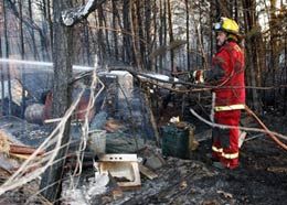 ![]() AP Photo/Willis Glassgow A firefighter douses flames that destroyed a local business in Conway, Sunday. |