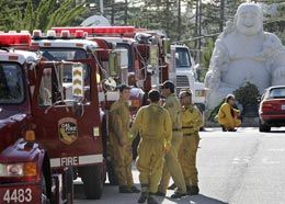 ![]() AP Photo/Paul Sakuma Firefighters rest from tackling the fire Thursday. |