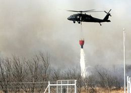 ![]() AP Photo/San Angelo Standard-Times, Patrick Dove A Blackhawk helicopter contracted through the Texas Forest Service attacks a grass fire from the air in Irion County, Tuesday. |