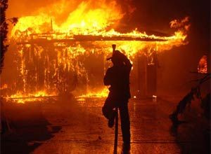 ![]() Photo Mike Meadows A firefighter approaches a fully engulfed home in San Fernando, Calif., Saturday. |